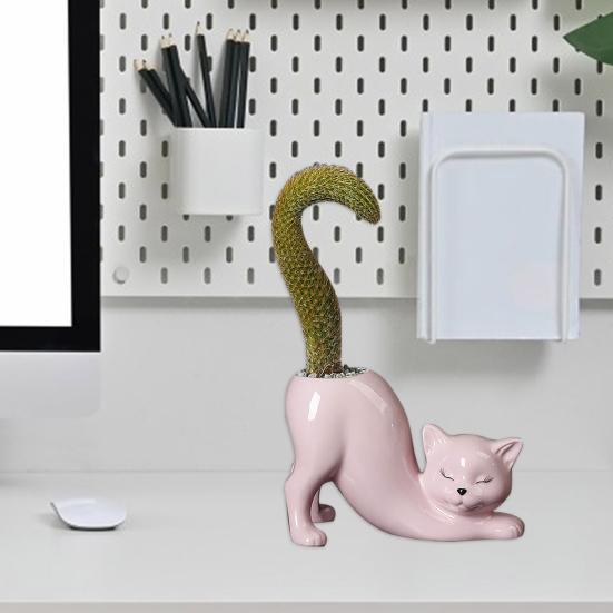 Этот цветочный горшок с уникальным дизайном имеет очаровательный мультяшный котенок, который добавит милую и милую атмосферу вашим растениям.. Этот горшок идеально подходит для демонстрации ваших любимых растений, особенно красивых суккулентов, таких как кактус сагуаро. Он придаст живость и очарование любому пространству.