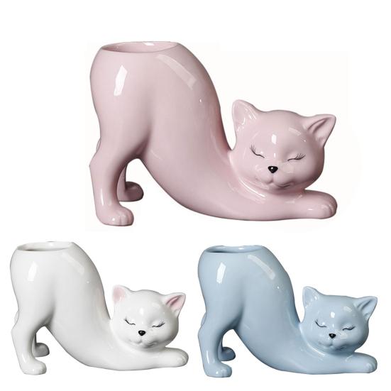 Добавьте очарования в свое жилое пространство с помощью этого очаровательного цветочного горшка с изображением котенка.