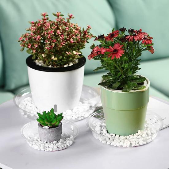 Прозрачная пластиковая конструкция обеспечивает видимость уровня воды и предлагает декоративный вариант с разноцветной галькой.. Универсальные в использовании, эти подносы не ограничиваются цветочными горшками, но также могут хранить конфеты или небольшие предметы.