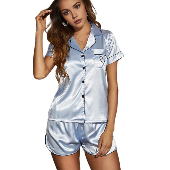 Материал: Этот модный женский пижамный комплект изготовлен из высококачественного полиэфирного волокна и ледяного шелка, что обеспечивает гладкость, нежность и мягкость на ощупь.. Легкая и дышащая текстура обеспечивает максимальный комфорт в течение всего дня.