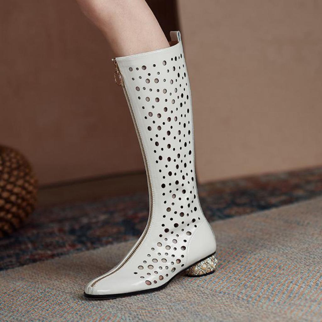 Летние сапоги Krazing Pot из микрофибры с круглым носком, модные летние сапоги с полыми украшениями, высокие сапоги до бедра
