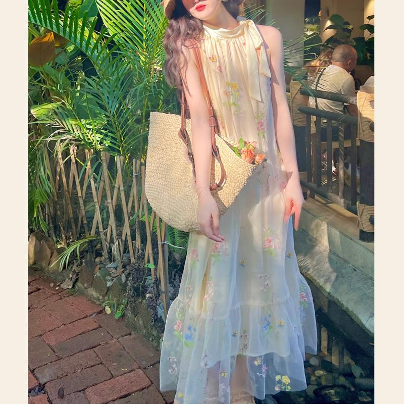 Летние свободные платья с вышивкой из сетки и висячей шеи — купить товар онлайн с бесплатной доставкой по всему миру!