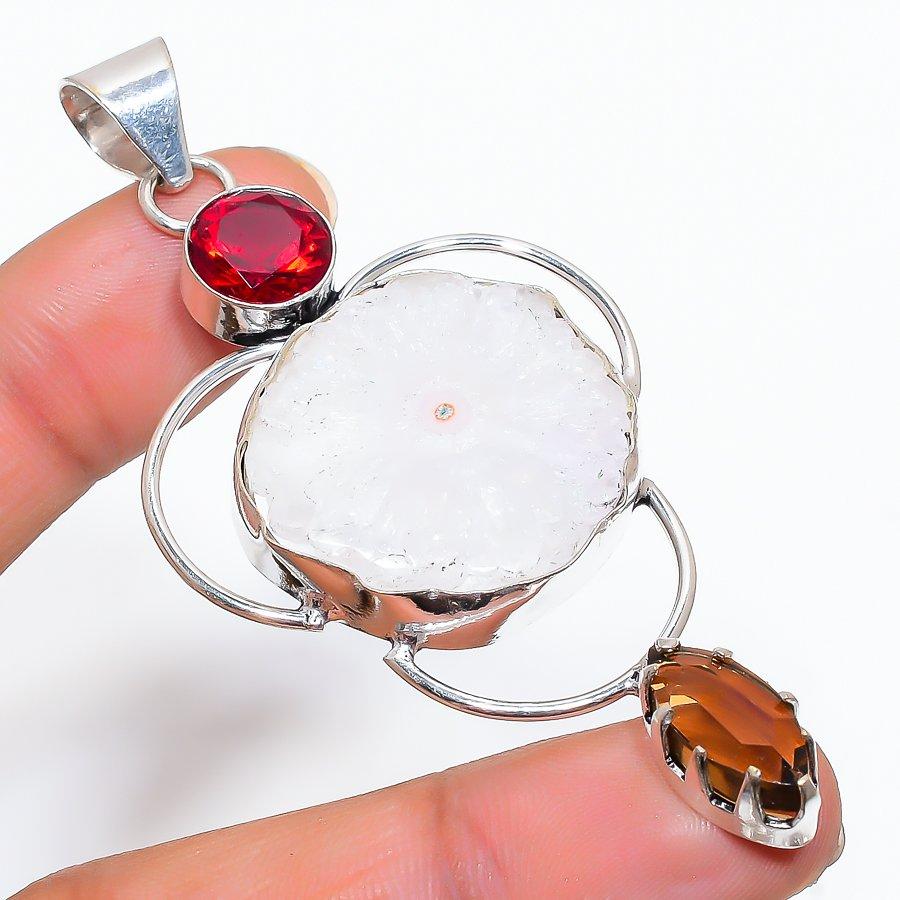 Подвеска из натурального белого солнечного кварца ручной работы из стерлингового серебра 925 пробы 3,07 дюйма