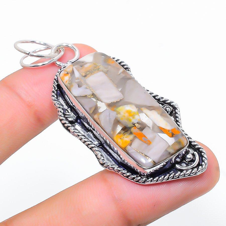 Подарочная подвеска из стерлингового серебра 925 пробы с натуральным шмелем яшмой 2,56 дюйма M8W99