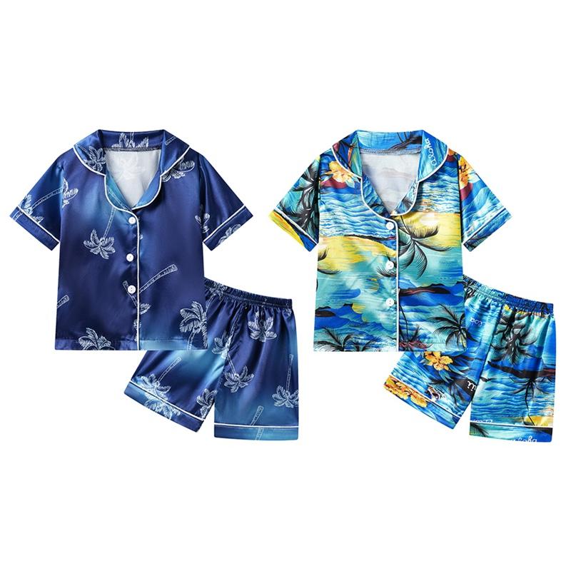 Летний пляжный топ с короткими рукавами и шорты для мальчиков 1–6 лет, костюм с принтом кокосовой пальмы
