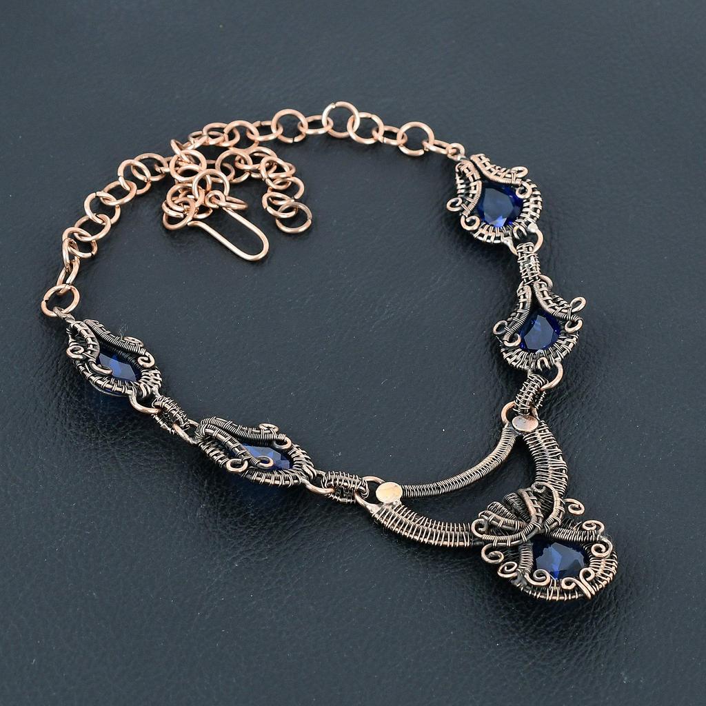Синий сапфир, созданный в лаборатории драгоценный камень, ювелирное ожерелье ручной работы из чистой медной проволоки для любви
