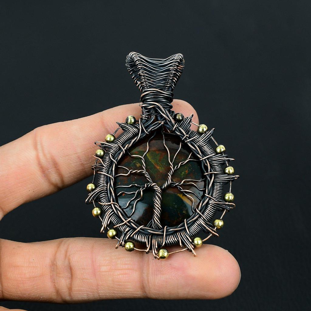 Древо жизни кровавый камень драгоценный камень чистая медная проволока обертка ручной работы уникальный ювелирный кулон
