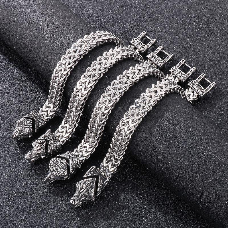 Персонализированный браслет с орлиным клювом, панк-ретро, голова волка, голова змеи, передняя и задняя цепочка, мужской браслет из титановой стали