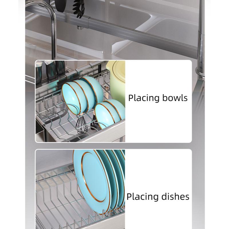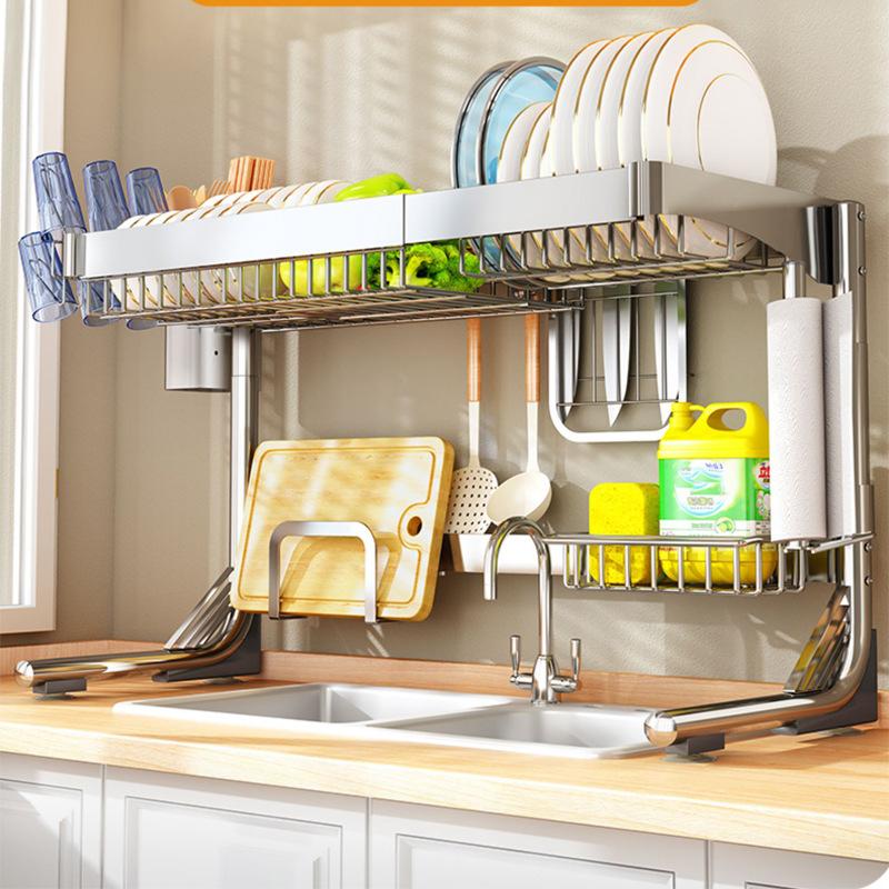 Полка для кухонной мойки из нержавеющей стали, столешница, многофункциональная полка для посуды, стеллаж для сушки посуды, стеллаж для хранения посуды на раковине