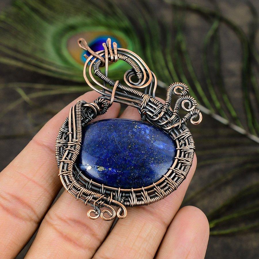 Подвеска ручной работы из медной проволоки из натурального лазурита, 2,56 дюйма, E6Y90 — купить товар онлайн с бесплатной доставкой по всему миру!