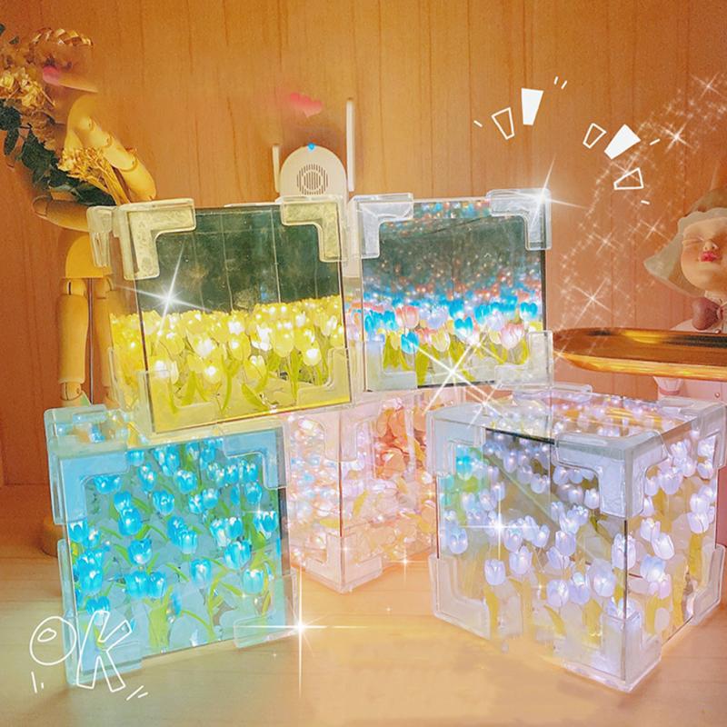 Лампа-тюльпан, ночник с цветком тюльпана своими руками, квадратное зеркало ручной работы, настольная лампа-тюльпан, украшение рабочего стола — купить товар онлайн с бесплатной доставкой до всему миру!