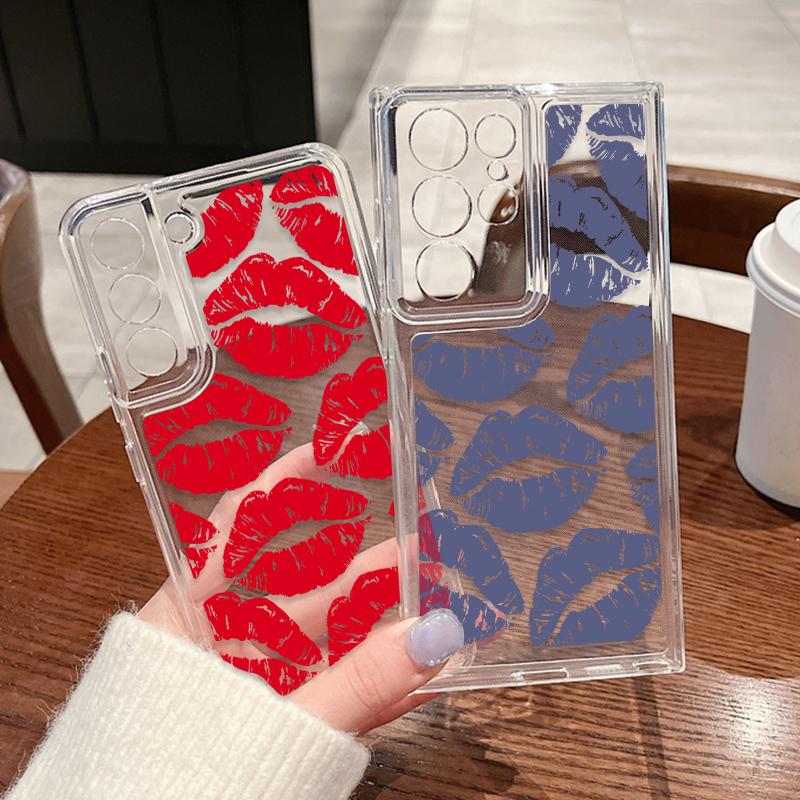 Противоударный силиконовый чехол для телефона Samsung S24 S23 Ultra S22 S21 Plus S20 FE A55 A54 A53 A52 A35 A34 A14, мягкий прозрачный чехол с цветным рисунком губ — купить товар онлайн с бесплатной доставкой по всему миру!