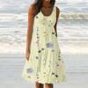 Женские платья-жилеты Лето-весна Плиссированные богемные платья Симпатичные струящиеся пляжные платья без рукавов Прямая футболка Платья-майки Платья с круглым вырезом