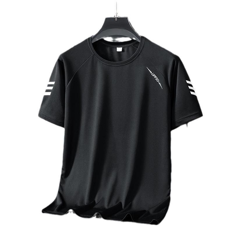Летняя негабаритная футболка из ледяного шелка для повседневного спорта. Мужская футболка с короткими рукавами, высокая эластичность, ощущение льда, воздухопроницаемость и быстросохнущая футболка.