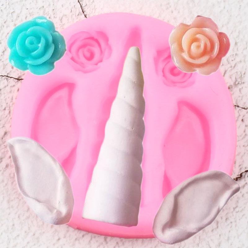 Силиконовые формы для единорога, радужные рога единорога, формы для помадки, форма для конфет, цветок розы, украшение торта, кекс, шоколадные конфеты, форма для полимерной глины