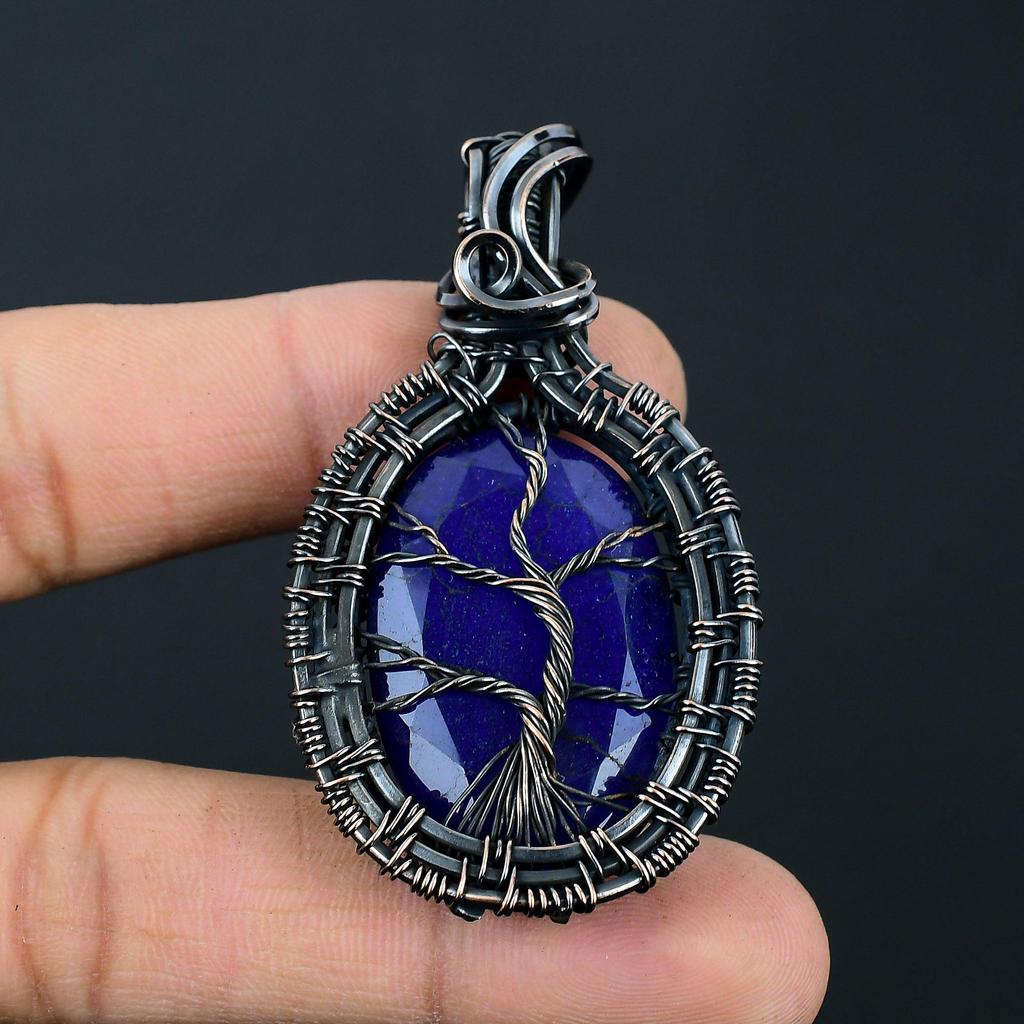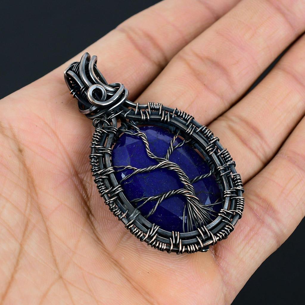 Синий сапфир драгоценный камень ручной работы из чистой медной проволоки обернутый кулон ювелирные изделия на День памяти
