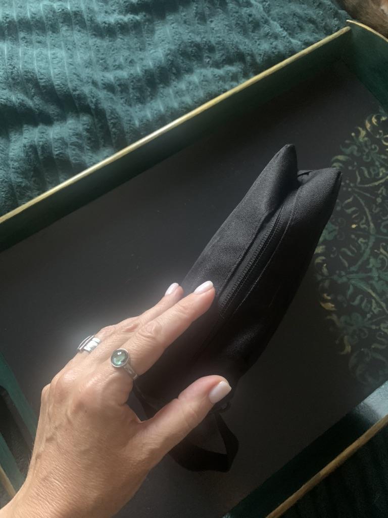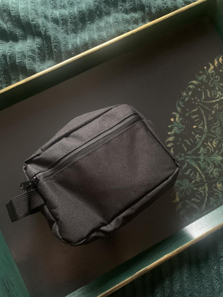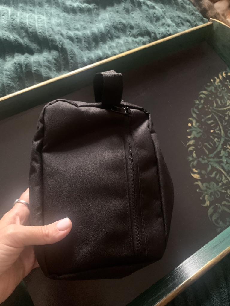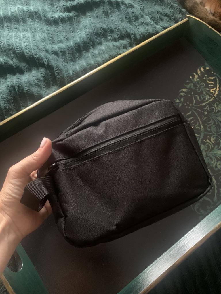 Дорожная косметичка В самом деле дорожная Потому что непромокаемый Сверху тканевый материал типа Оксфорд У меня черного цвета Есть ручка - петля для переноски Размер ни большой, ни маленький Ок. 22 х 15 Ширина примерно 8 см, Внутри 2 кармана Все швы закрыты плотной бейкой Славная Могу советовать