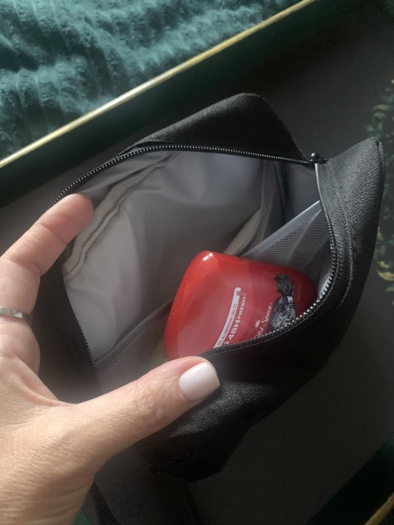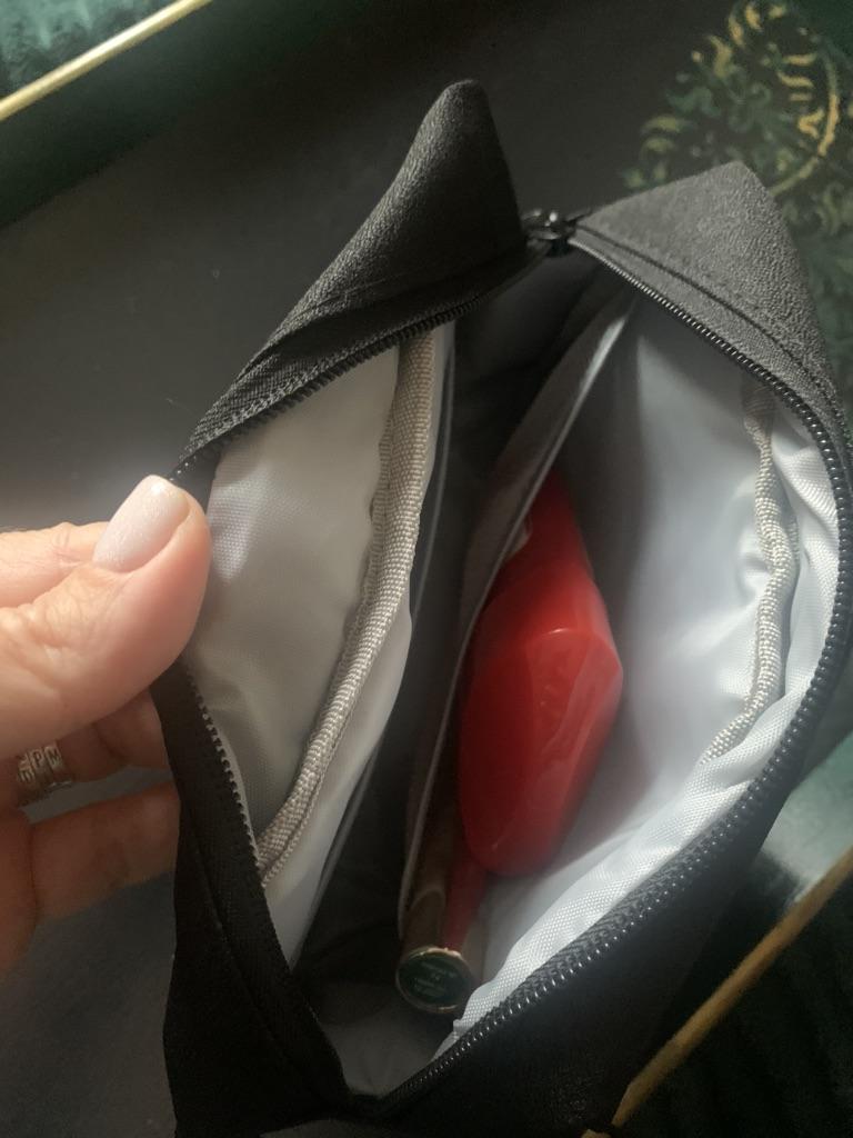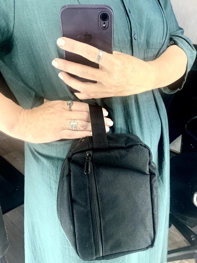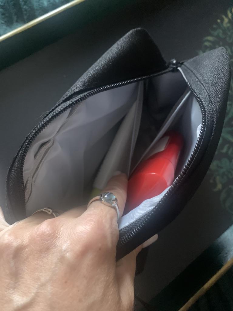 Дорожная косметичка В самом деле дорожная Потому что непромокаемый Сверху тканевый материал типа Оксфорд У меня черного цвета Есть ручка - петля для переноски Размер ни большой, ни маленький Ок. 22 х 15 Ширина примерно 8 см, Внутри 2 кармана Все швы закрыты плотной бейкой Славная Могу советовать