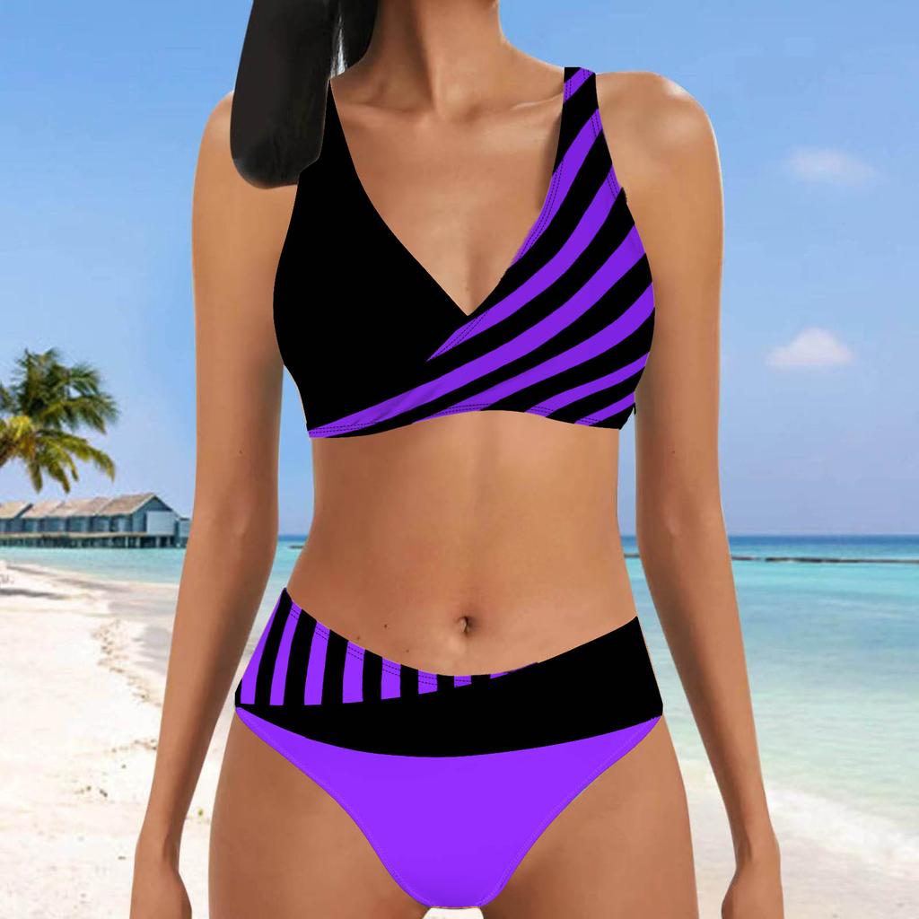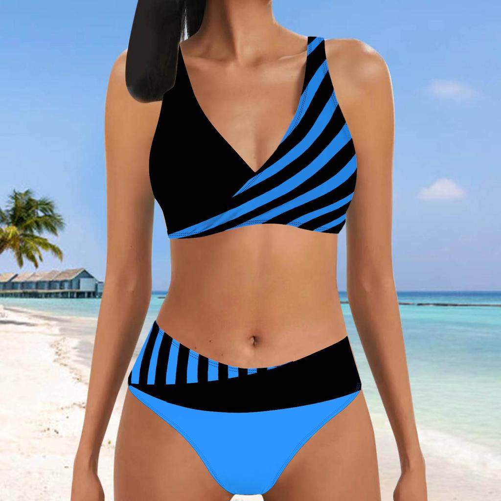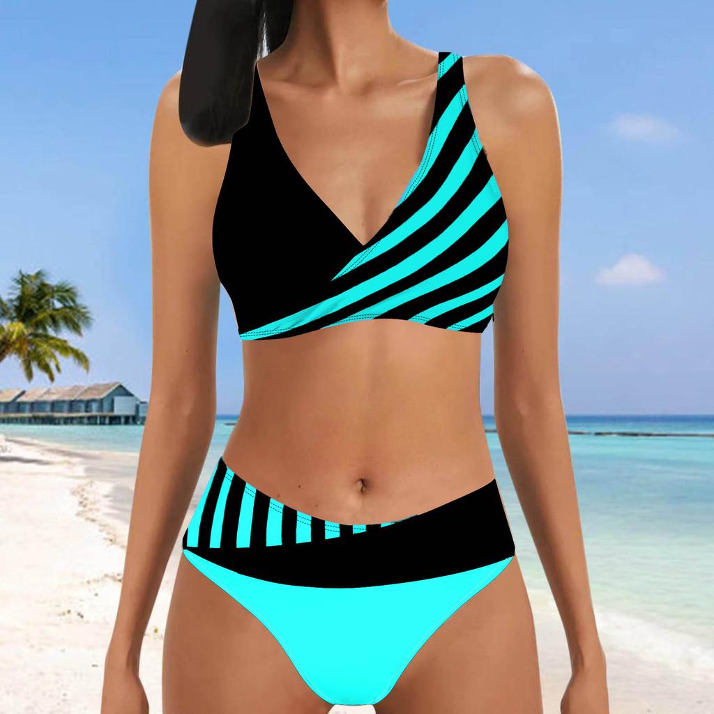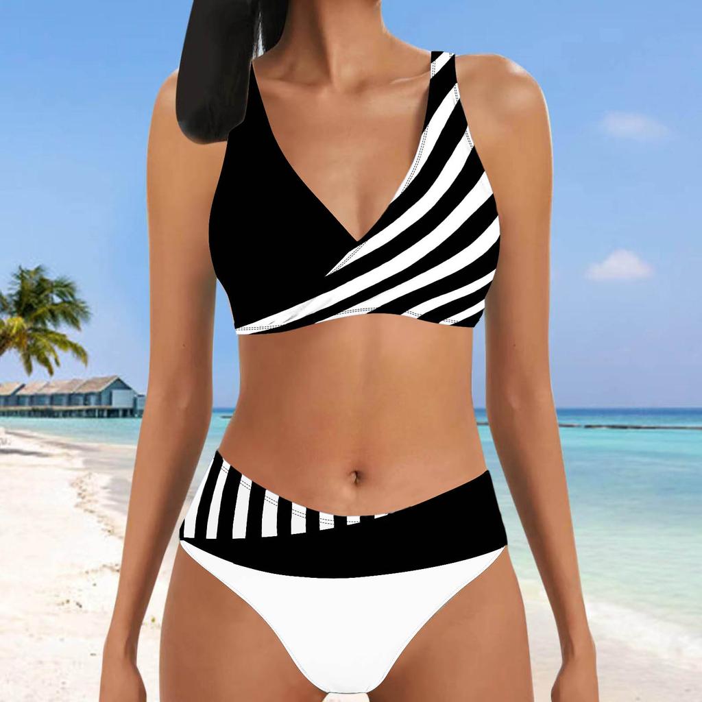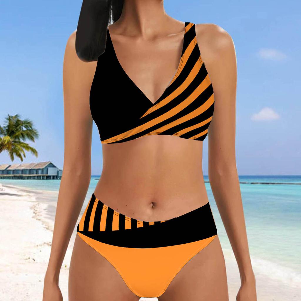 Женский купальник с подвесным вырезом и бикини с принтом в одну диагональную полоску, короткий купальник-майка