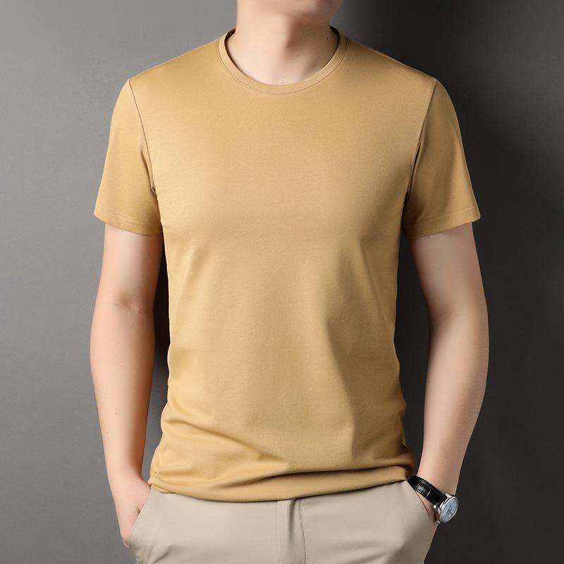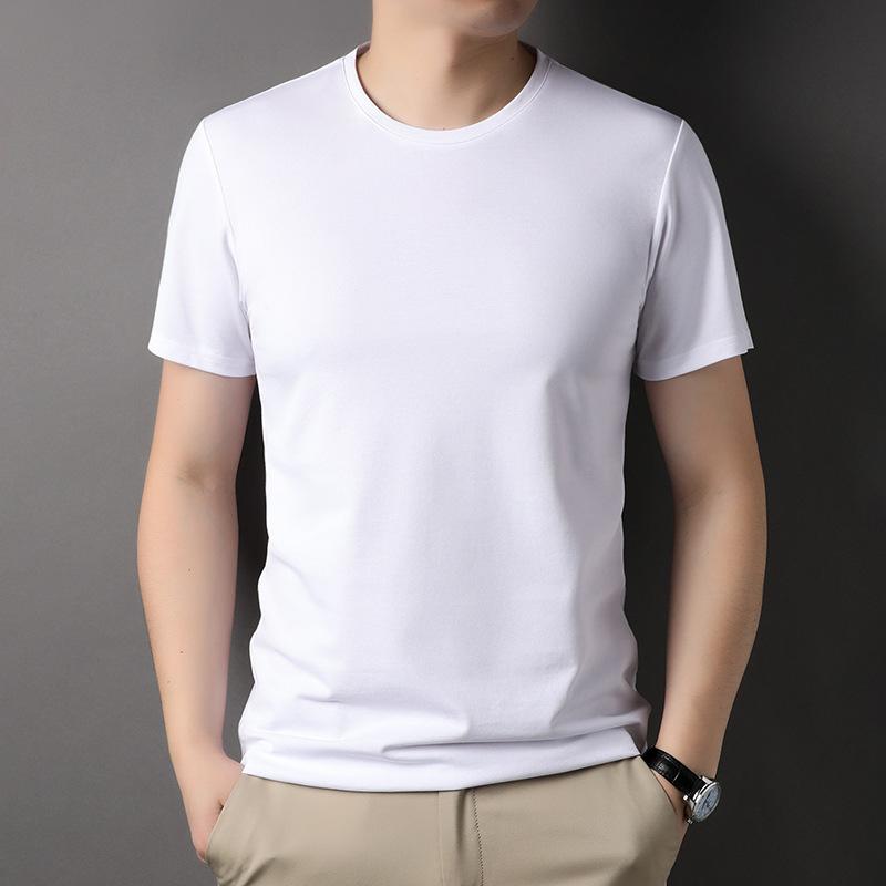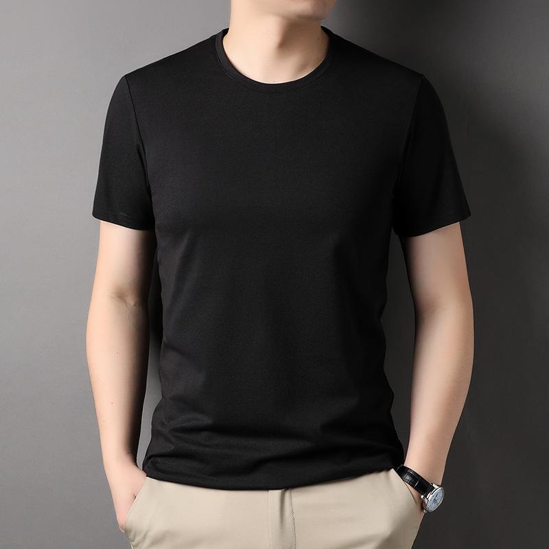 Мужская футболка с короткими рукавами, летняя одежда, круглый вырез, тонкая нижняя часть из тутового шелка, модная хлопковая футболка
