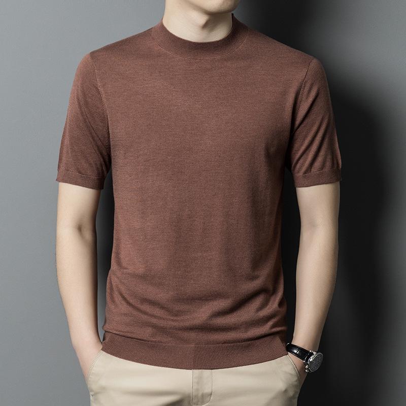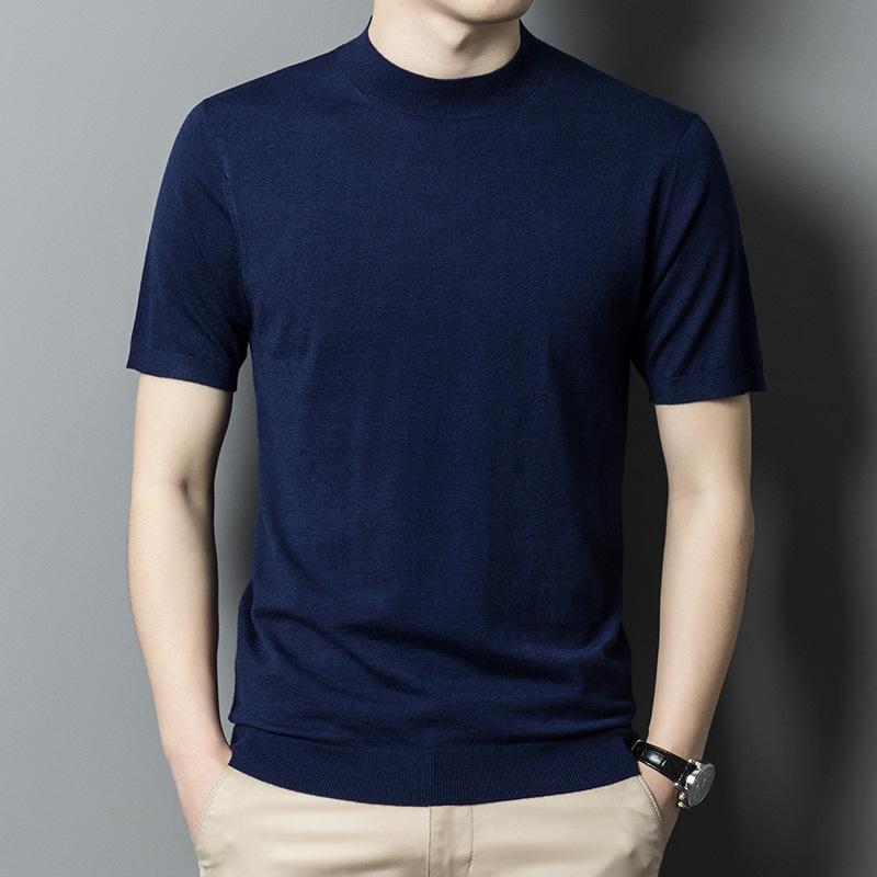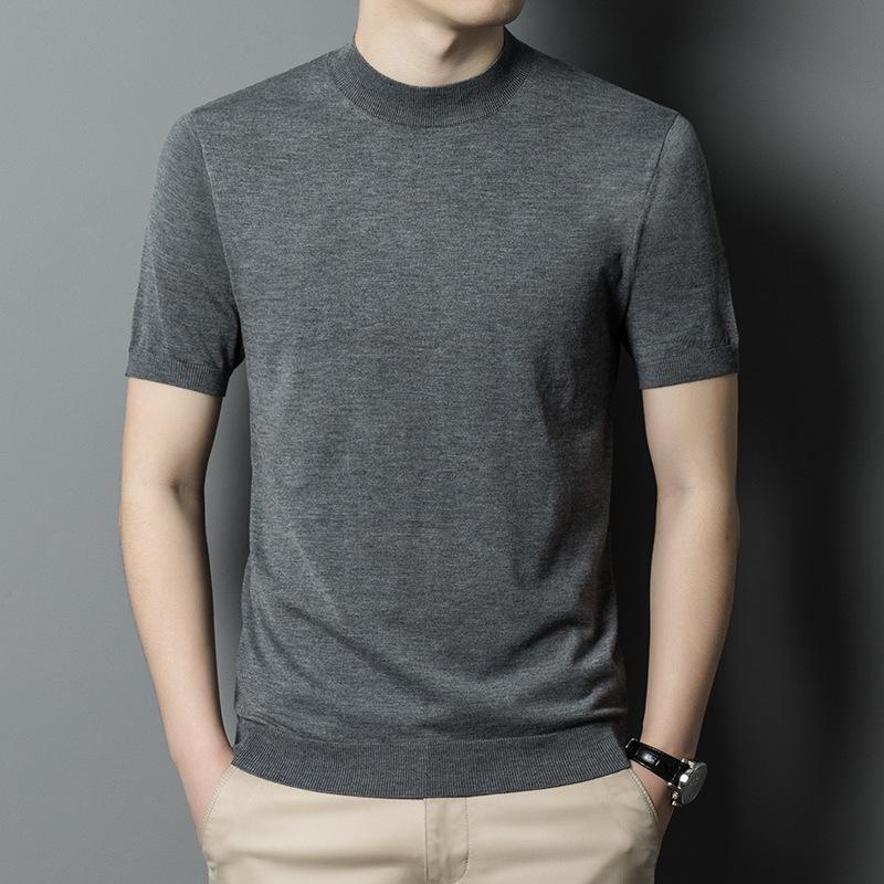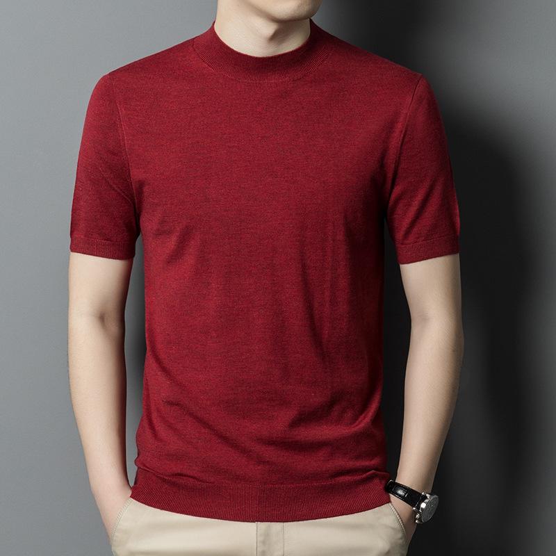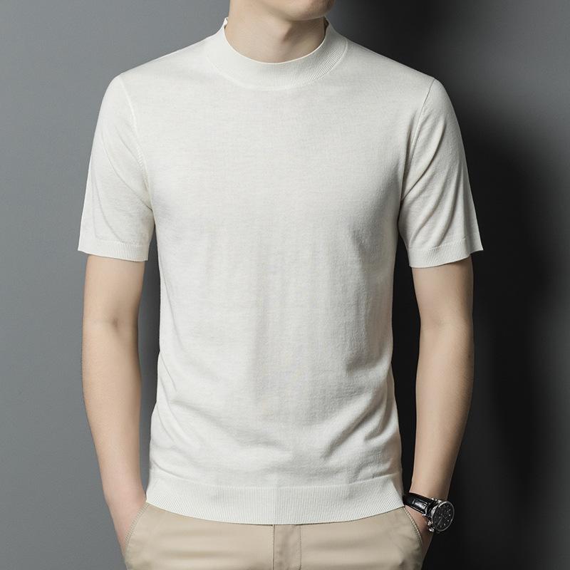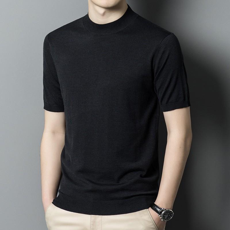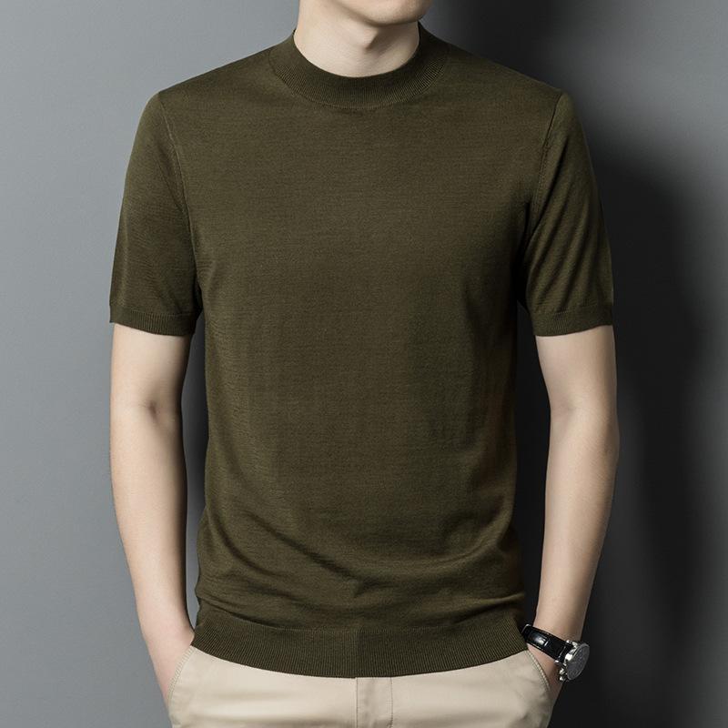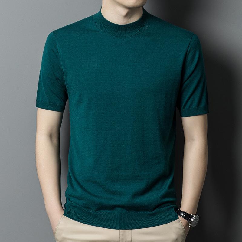 Новая осенняя полуводолазка, вязаный свитер с короткими рукавами, мужская деловая мода, повседневная шерстяная рубашка с короткими рукавами, мужская одежда