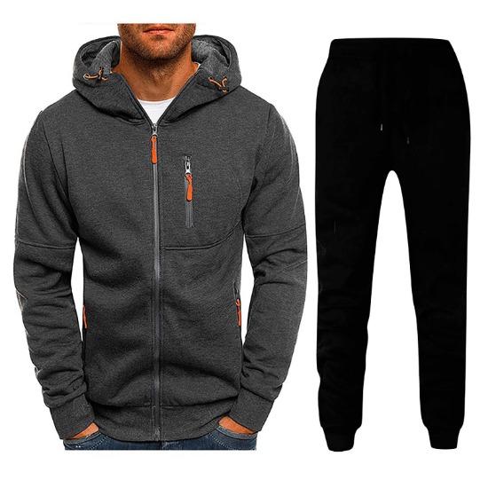 2024 Мужской комплект зимних видов спорта для отдыха и фитнеса с несколькими застежками-молниями, толстовка с капюшоном и брюки