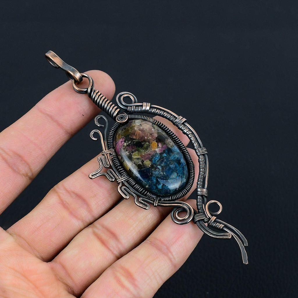 Великолепный арбузный турмалин, драгоценный камень, кулон ручной работы из чистой медной проволоки, ювелирный кулон