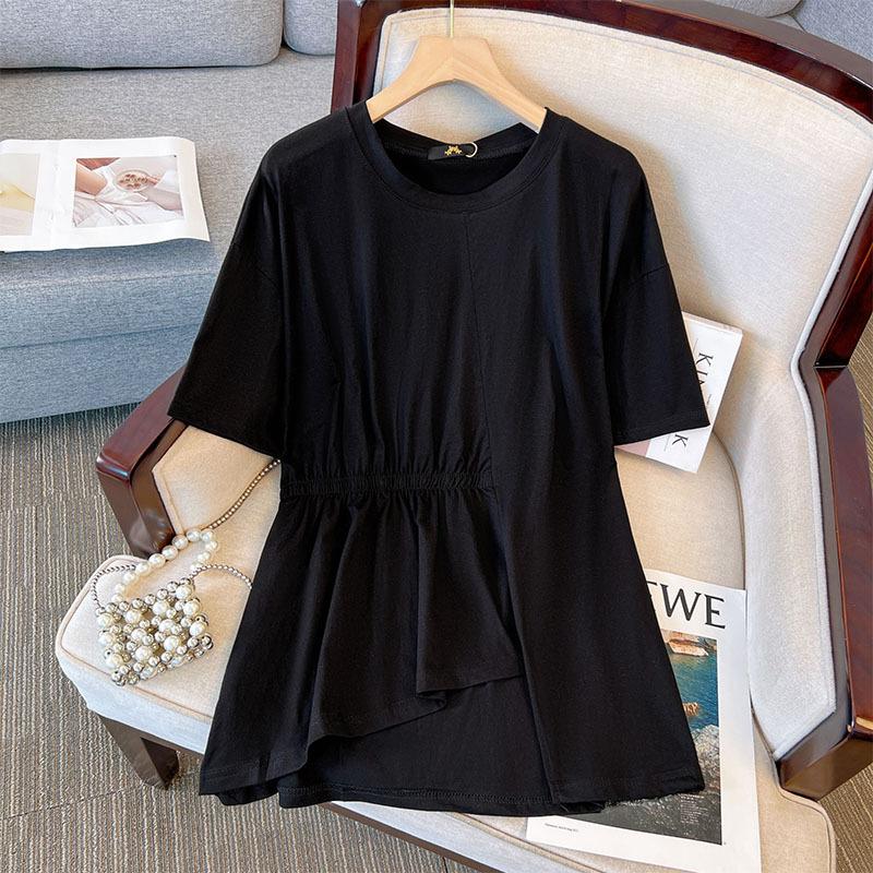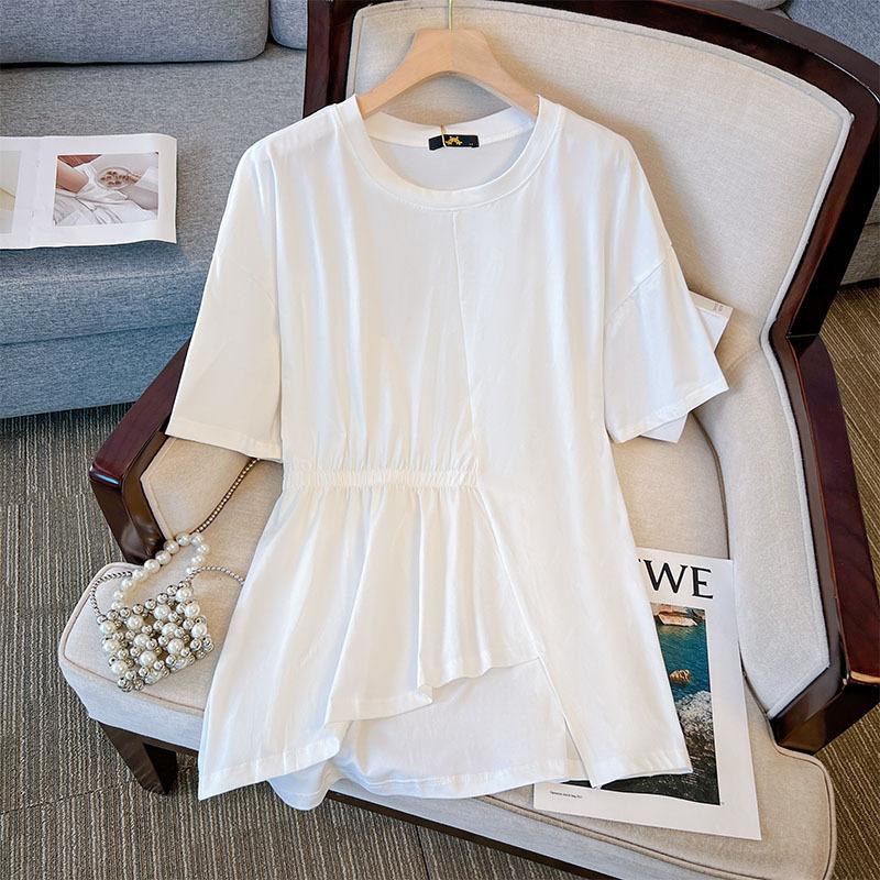 Женская футболка больших размеров, дизайнерский верх, свободная нижняя рубашка, летняя футболка с короткими рукавами