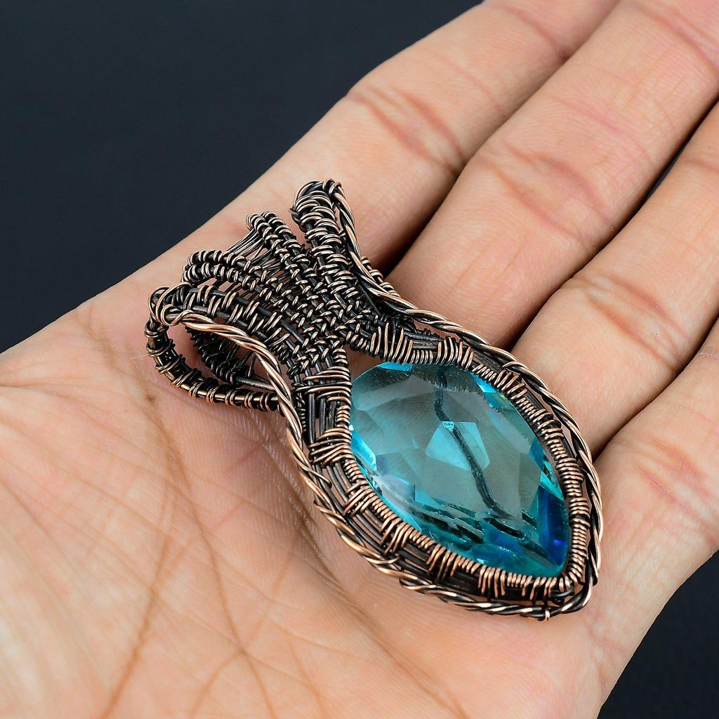 Привлекательный синий топаз с драгоценным камнем ручной работы из медной проволоки, ювелирный кулон