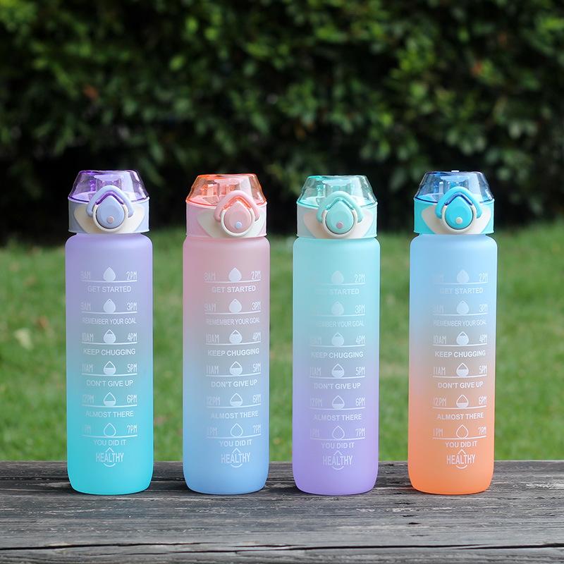 Цветной спрей, пластиковая чашка для воды, спорт на открытом воздухе, портативная портативная космическая чашка, 1000 мл, бутылка для воды с весами