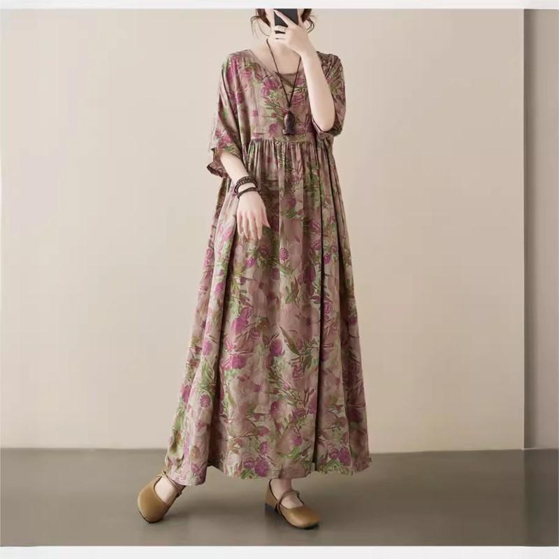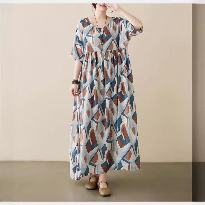 Johnature Женское весеннее индивидуальное платье с круглым вырезом и короткими рукавами, винтажное платье сращивания