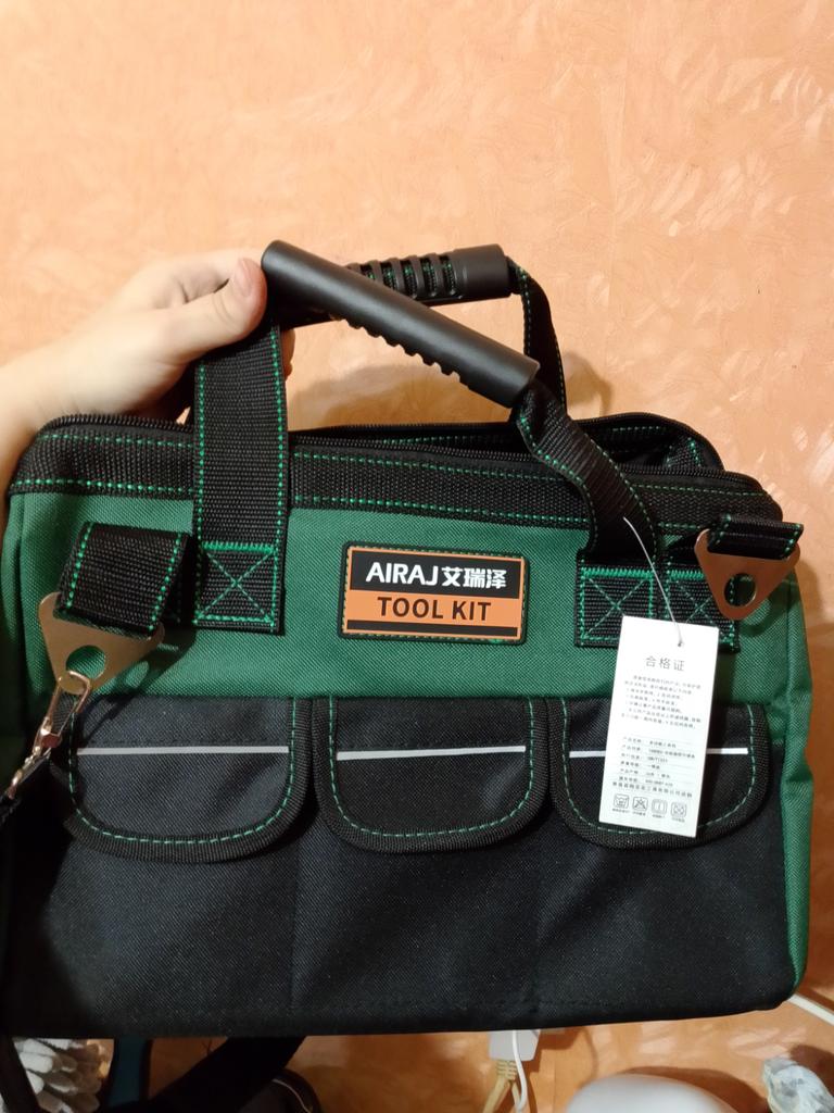 Заказ шёл меньше месяца. Пришло все целым. Сумка для инструментов выполнена качественно. Ткань прочная, толстая Оксфорд. Прошита качественно, есть ремень через плече и добротная ручка. Товаром доволен, спасибо за подарок и качественный товар продавцу.