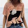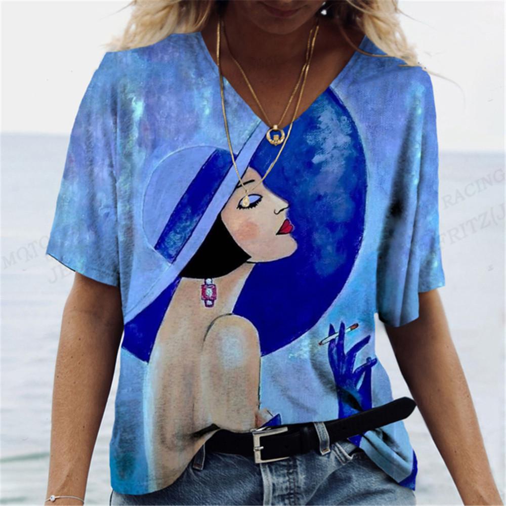 Harajuka абстрактные крутые футболки с принтом в стиле ретро, женские универсальный пуловер с коротким рукавом, летние дизайнерские повседневные женские футболки с v-образным вырезом