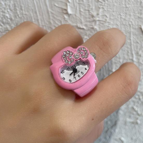 Yousheng мультфильм кошка кольцо на палец часы со стразами и бантом эластичный ремешок из нержавеющей стали женские часы кольцо на палец подарок на день рождения модные аксессуары