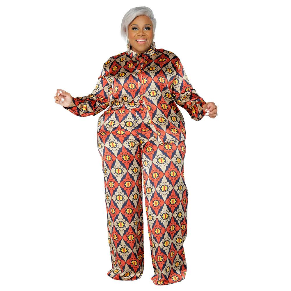 Женский кардиган с принтом больших размеров, свободные брюки с длинным рукавом, модный повседневный костюм с принтом