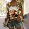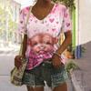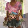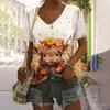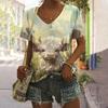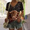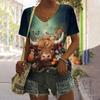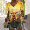 Женская футболка с изображением животных, летняя повседневная футболка с короткими рукавами, милый топ с принтом теленка, уличная мода с 3d принтом, женская одежда в стиле Харадзюку с v-образным вырезом