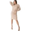 Женский костюм из худи с капюшоном и юбкой прямого кроя с разрезом сзади, сшит из натуральных материалов.