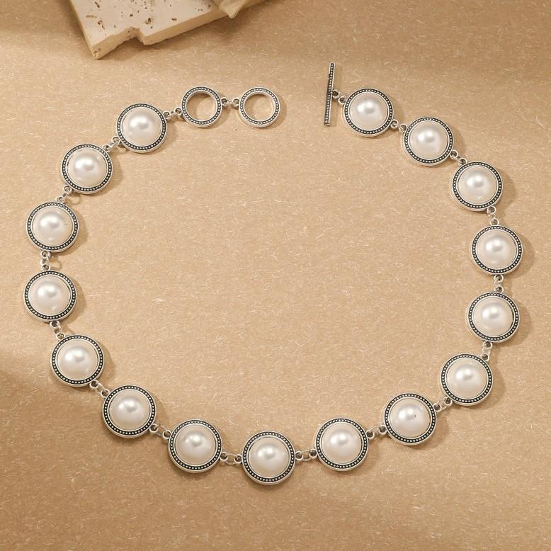 Ожерелье из зеленого камня в стиле ретро в этническом стиле с женской индивидуальностью, круглая цепочка из бисера, текстура, простое художественное ожерелье