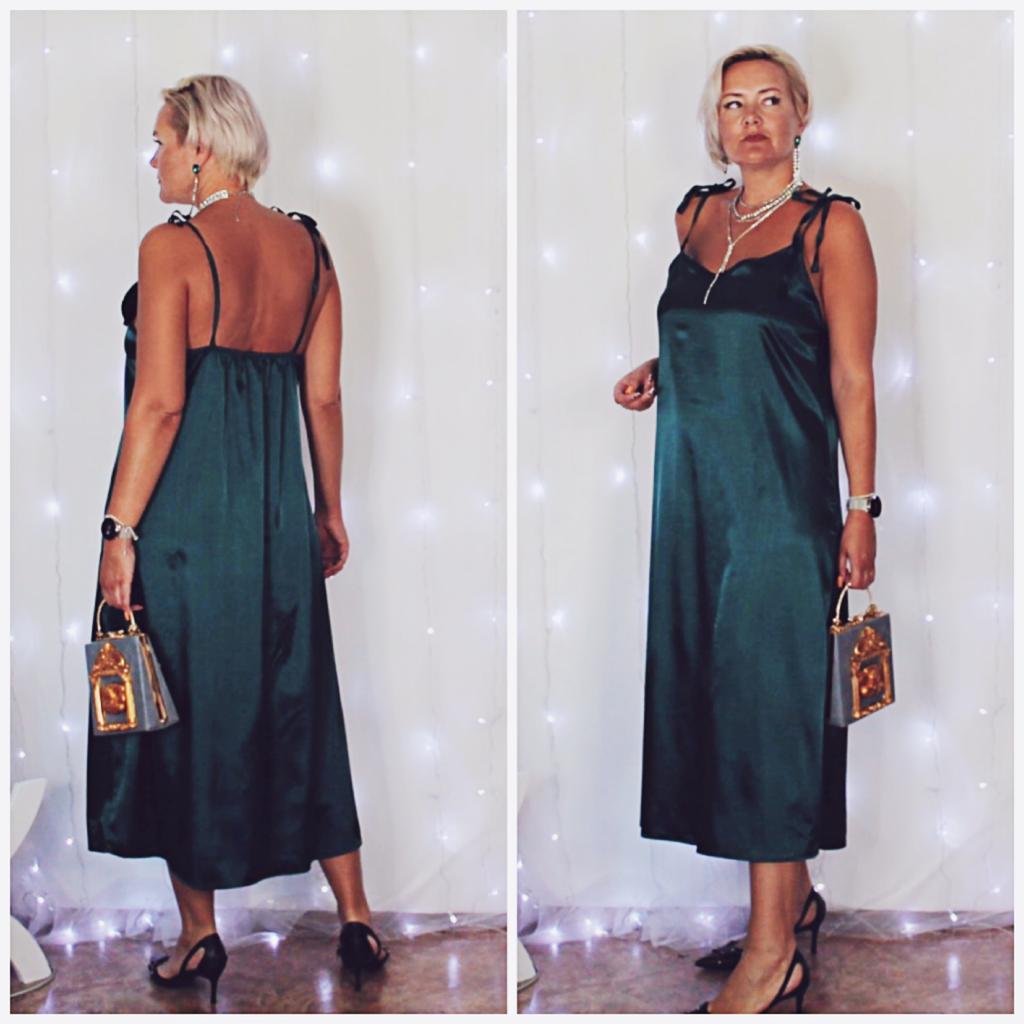 Платье в бельевом стиле в изумрудном цвете 💚 Привет! Такой стиль в свое время был принят в штыки и я была не исключение. Ещё бы, носить сорочку на выход😱, но все меняется вкусы, предпочтения и стиль. Для себя я поняла, что как только я буду что то не принимать в этом мире со словами : "А вот в наше время... " Я тут же стану бабушкой Надей и жизнь переснет мне приносить удовольствие. Попробовав однажды этот стиль я влюбилась в него я очень ценю ощущения свободы в одежде, да и в жизни, так что бельевом стиль - это на 100% моё! А как Вы относитесь к этому стилю? ‼️Добавила не большое видео ‼️ Ткань: Очень приятная, достаточно плотная при этом мягкая без стрейч эффекта. Красиво переливается и блестит. Дизайн: Как положено такому стилю платье свободного кроя, на бретельках они на завязках. Завязки регулируют высоту посадки платья. Спинка достаточно открытая по верхнену краю вшита резинка. Спереди в зоне груди ткань двойная. Нюансы: Платье по ссылке рассчитано на вкусные параметры. Мне даже в самом маленьком размере платье чуть велико. Качество : Притензий нет сшито платье отлично. Цвет: Изумрудный на фото продавца он просто зелёный по факту в цвете больше голубого. Размер: На мне 1XL Мои параметры : рост 172 см 98/76/106 см Детали : Длина ~122 см ОГ 94 до 126 см ОТ 108 см ОБ 132 см Резюмирую: Платье подойдёт не только на выход с ним очень классно составлять сложные многослойные образы в спортивном и повседневном стиле. Добавляя в образы объёмные джинсовка, пудбашки, грубые ботинки и кроссовки. Платье рекомендую 👍 Я не прощаюсь, M_K Изумруд_в_гардеробе