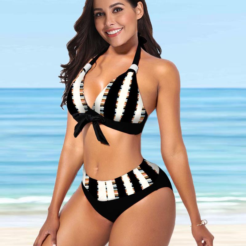 Женский купальник с подвеской на шее и белый маленький купальник с квадратным принтом, бикини, короткая майка, купальник