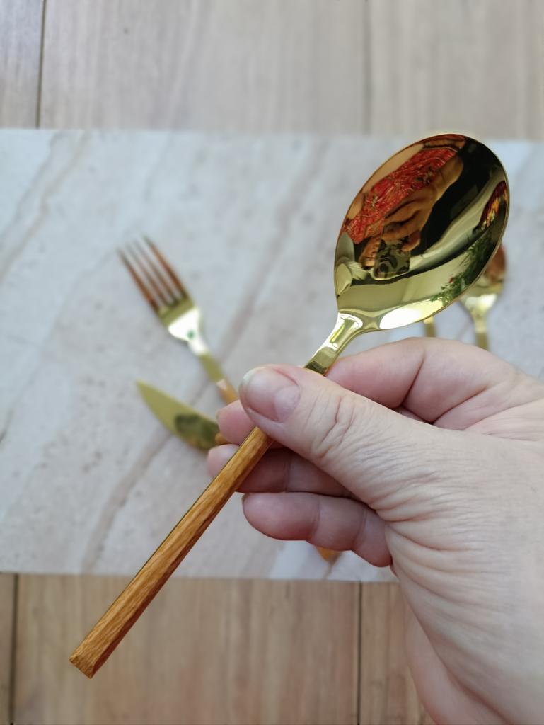 Набор посуды из нержавеющей стали с имитацией деревянной ручки, западная посуда, посуда, зажим, нож, вилка, чайная ложка, набор из пяти предметов