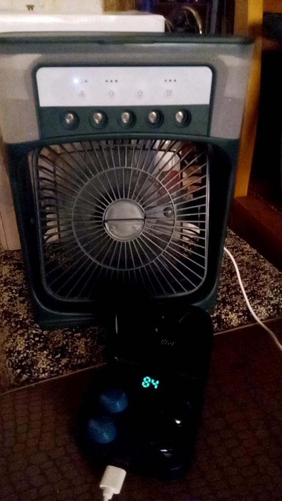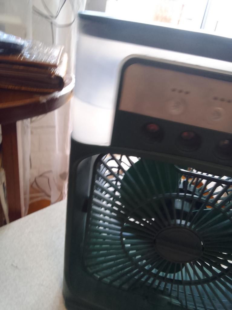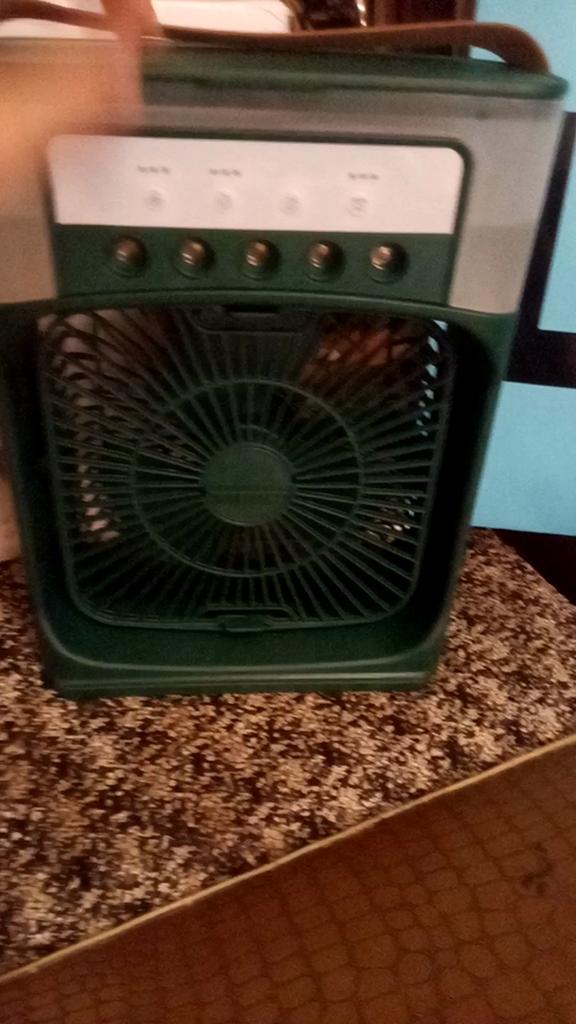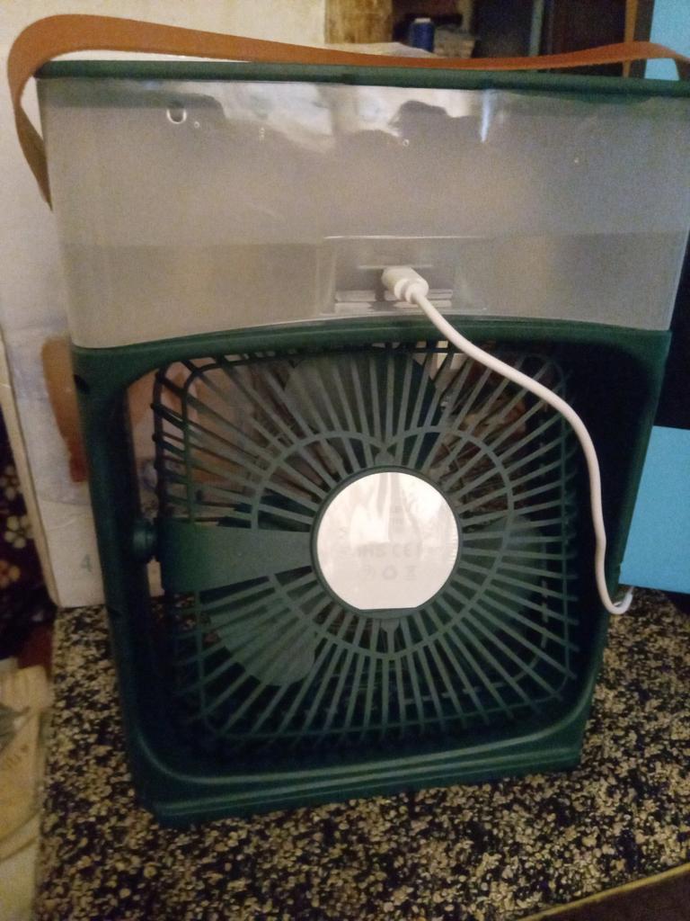 Это не просто классная покупка!!! Я очень довольна!!! Товар стоит своих денег!!! Я в восторге!!! Три режима работы вентилятора, увлажнителя, несколько цветов подсветки. Есть таймер на три режима, ручка из кожзама. Зарядка USB, также можно подключать через павербанк. Сам вентилятор можно наклонять в двух положениях. Есть 3 цвета, я выбрала зелёный. Коробочка слегка примята, но кулер целый. Спасибо огромное продавцу и Джум!!! Это любовь!!!