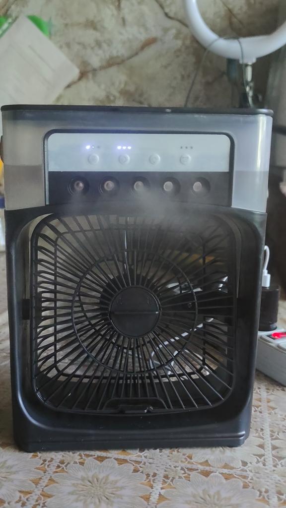 Доставка быстрая, товар качественный! Весьма мощный вентилятор и увлажнитель! Дает хороший холод даже без льда, а со льдом вообще сказка! Можно применять для ароматерапии, для этого необходимо снять кружочек из центра вентилятора и капнуть пару капель эфирного масла на круглую прокладку. Можно регулировать мощность вентилятора и увлажнителя, много цветов для подсветки. Есть таймер, можно регулировать самовыключение. Правда, если включать все 6 слотов увлажнителя, то его хватает едва ли на 2 часа использования, это минус, конечно. А так товар очень нравится! То, что мне было надо.