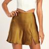Сплошной цвет атласной эластичной сексуальной юбки с разрезом и высокой талией