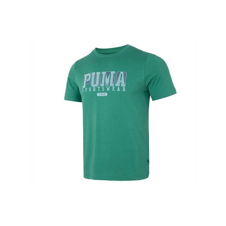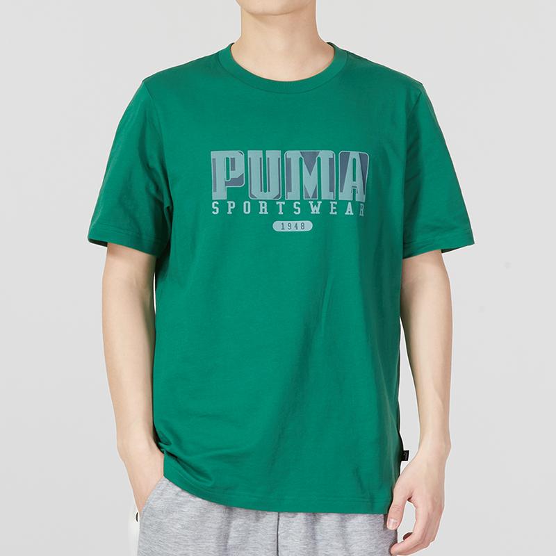 Puma Футболка свободного покроя с коротким рукавом и принтом букв, мужская, темно-зеленая, 676622-37