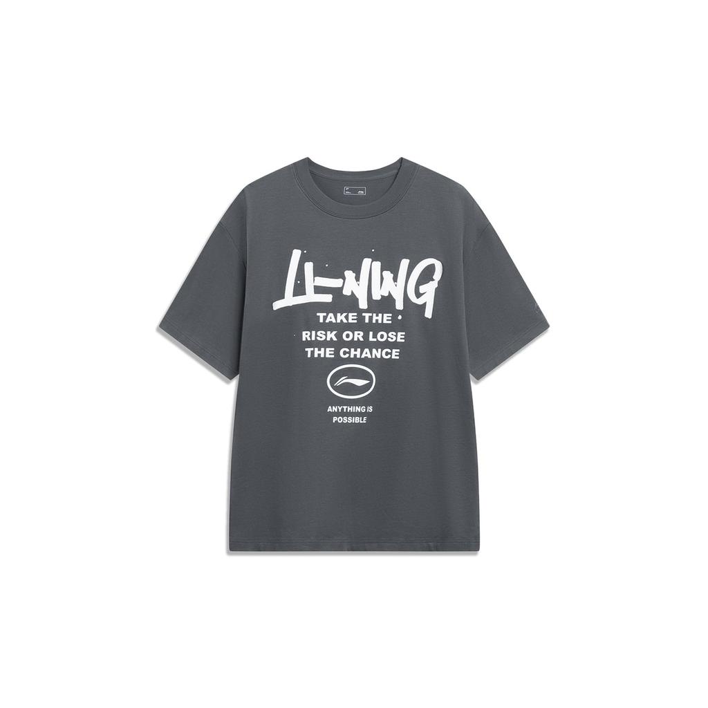 Li-Ning Футболка-пуловер с круглым вырезом и принтом логотипа в виде буквы, унисекс, цвет свинцово-серый AHST553-5
