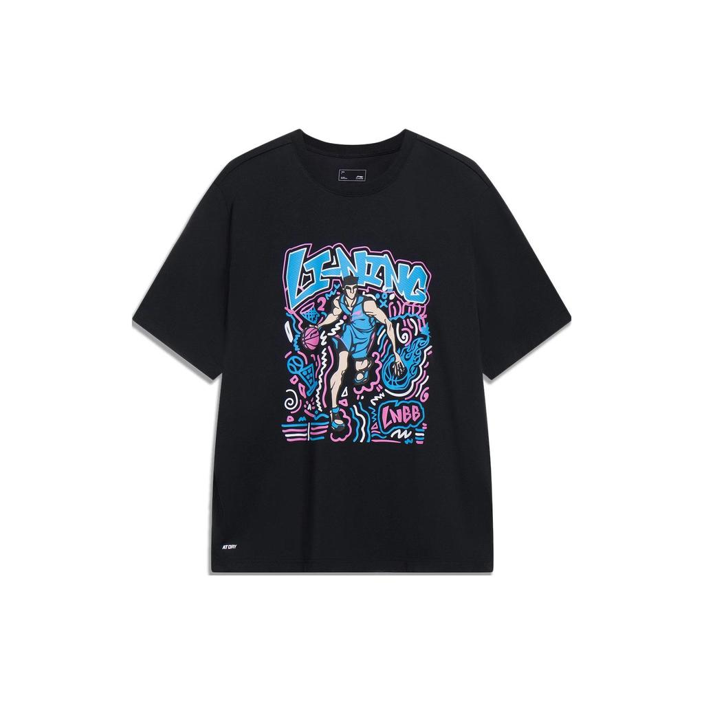 Li-Ning Футболка с коротким рукавом Sports Life Series с принтом и круглым вырезом, мужские топы, черные AHST569-2