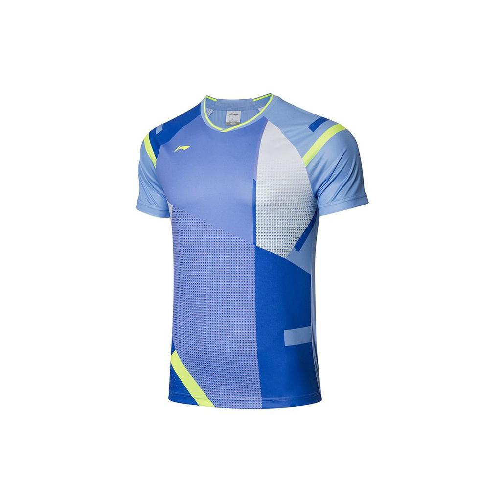 Li-Ning Футболка с коротким рукавом для мужчин серии Badminton Quick-Dry Cool Match, небесно-голубая AAYR011-4