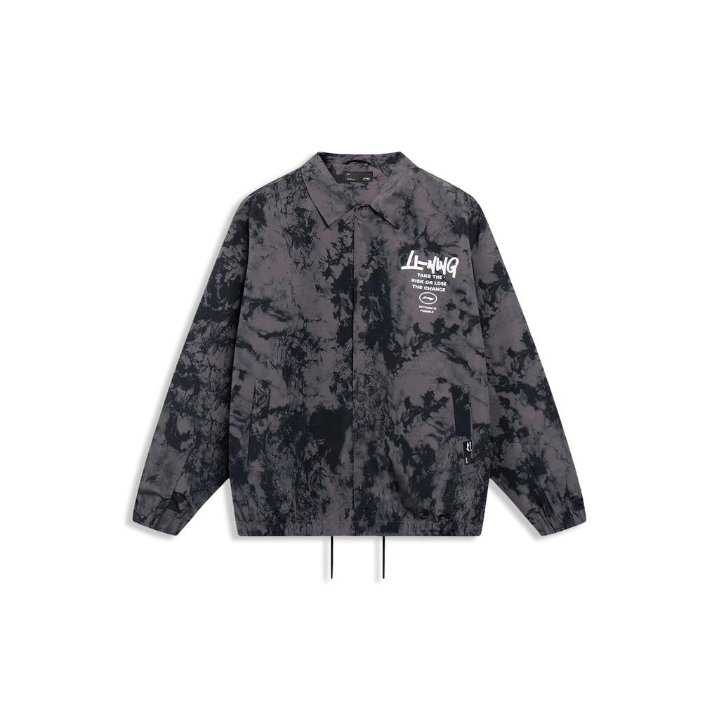 Li-Ning Спортивная модная серия, мужская куртка с воротником в стиле ретро в стиле тай-дай, с буквенным принтом и логотипом, черная AJDT499-3