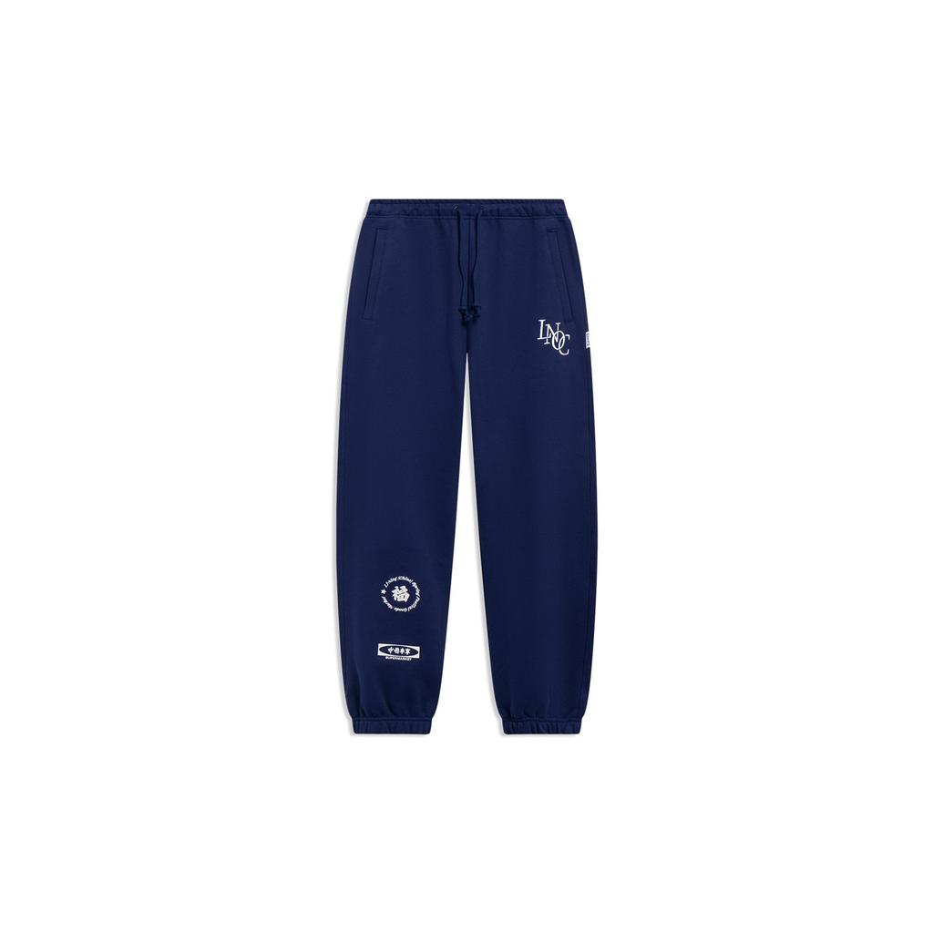 Li-Ning Спортивные спортивные штаны Daily с золотым принтом и эластичными щиколотками, низ унисекс, темно-синий AKLT231-1